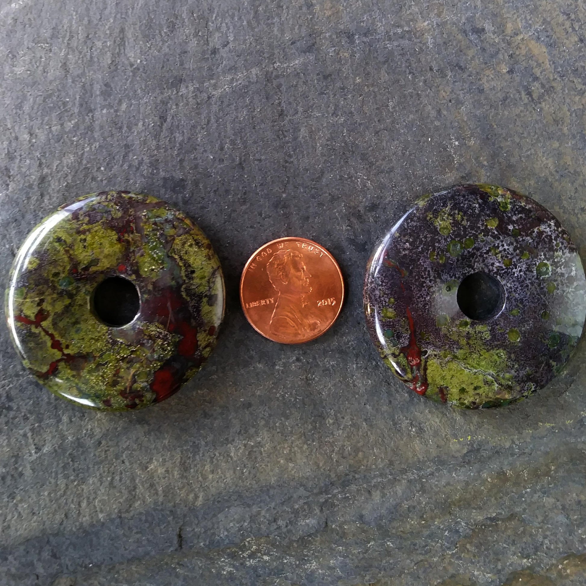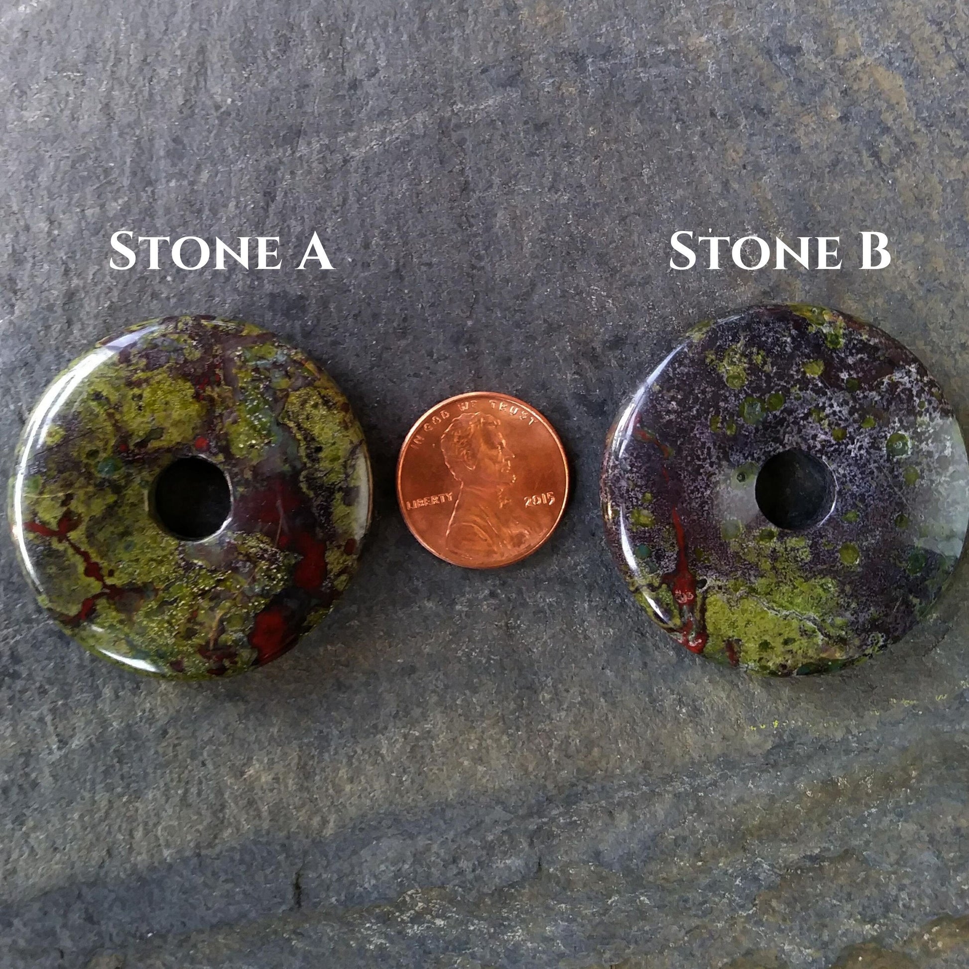 40mm Dragon Blood Jasper Stone Donut on black waxed cotton cord