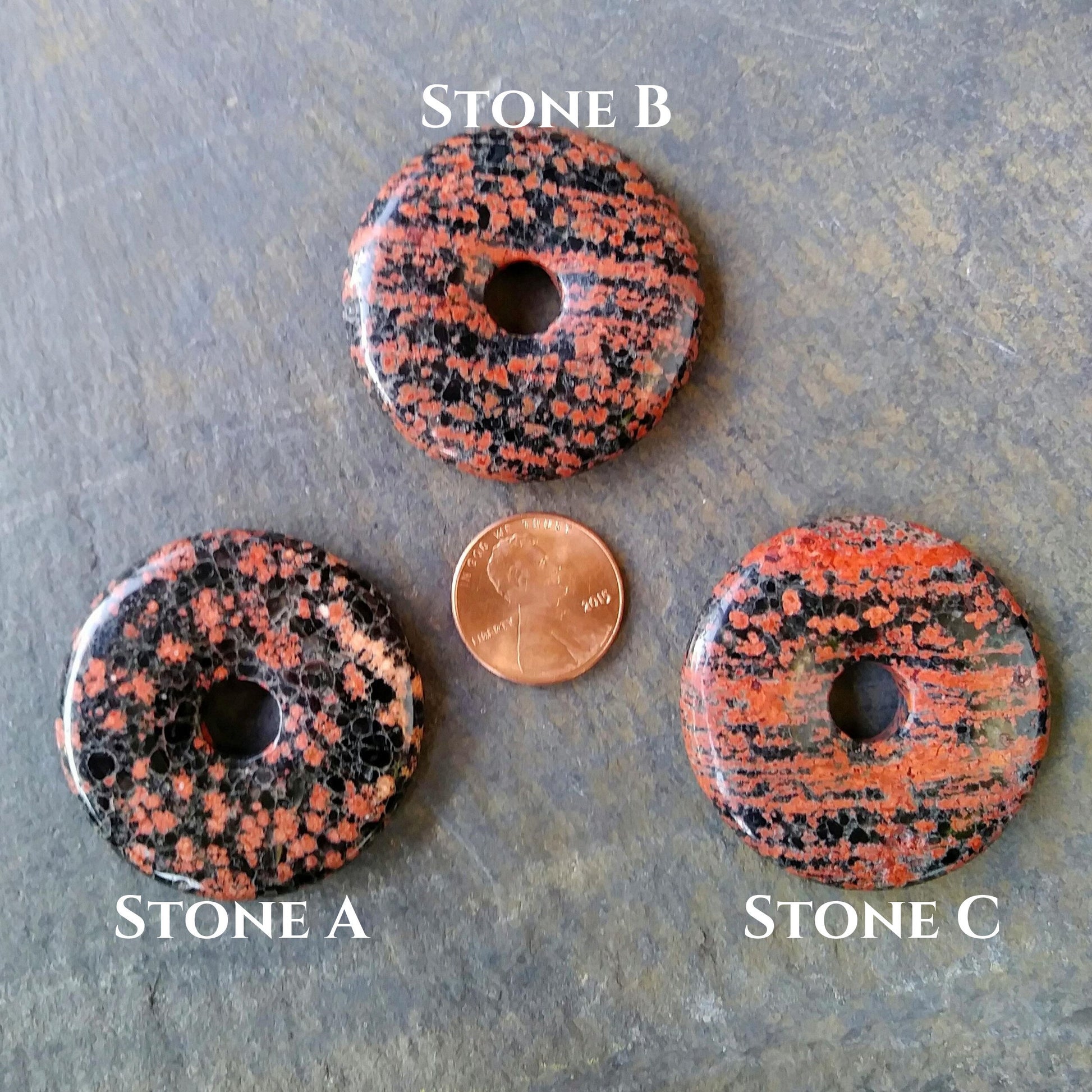40mm Red Snowflake Jasper Stone Donut on black waxed cotton cord