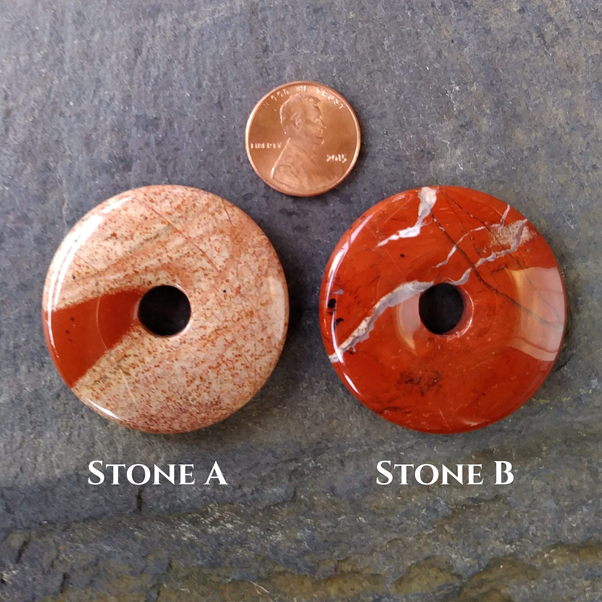 40mm White Lace Red Jasper Stone Donut on black waxed cotton cord