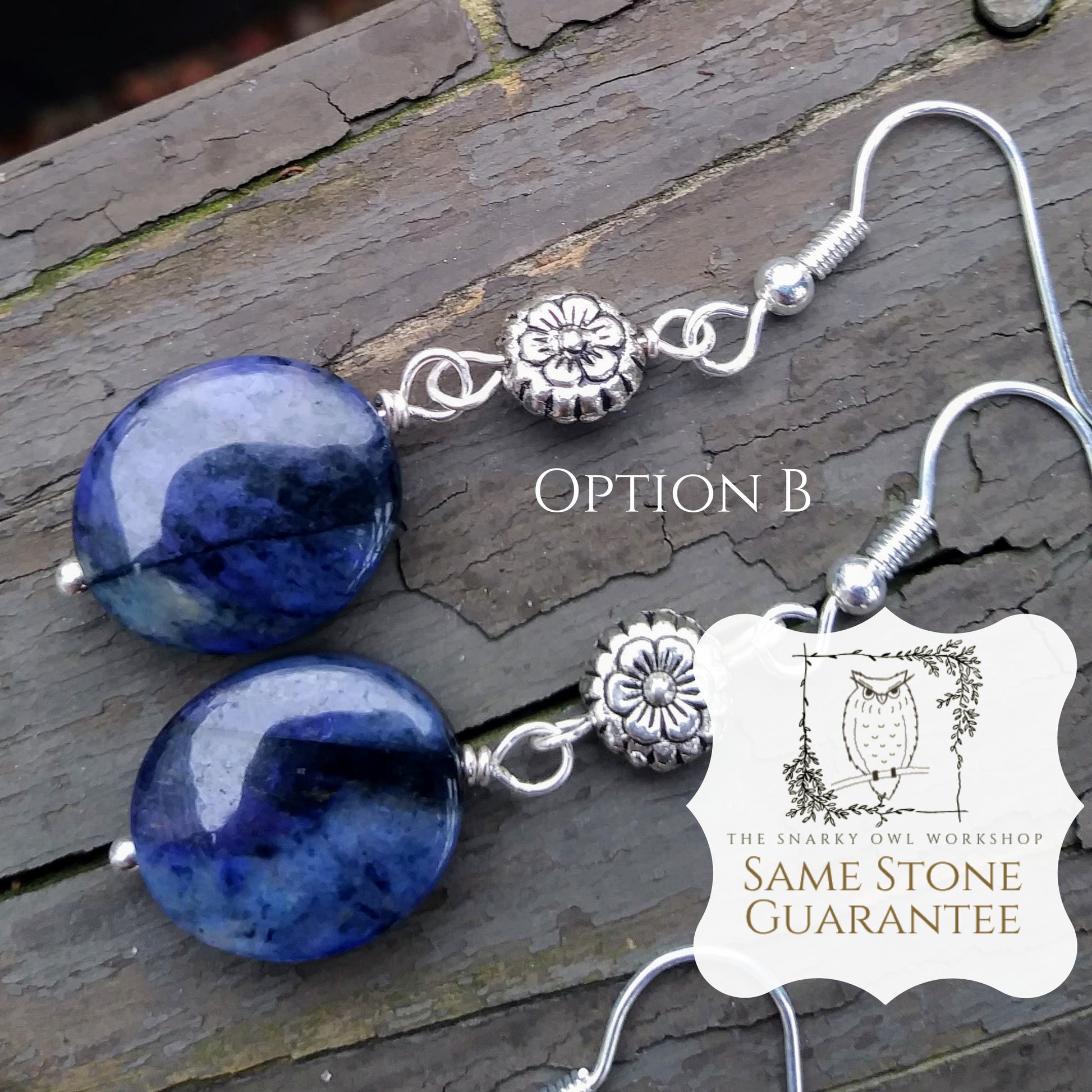 Cobalt Blue Earrings Flower Dumortierite Stone Silver Statement Earrings
