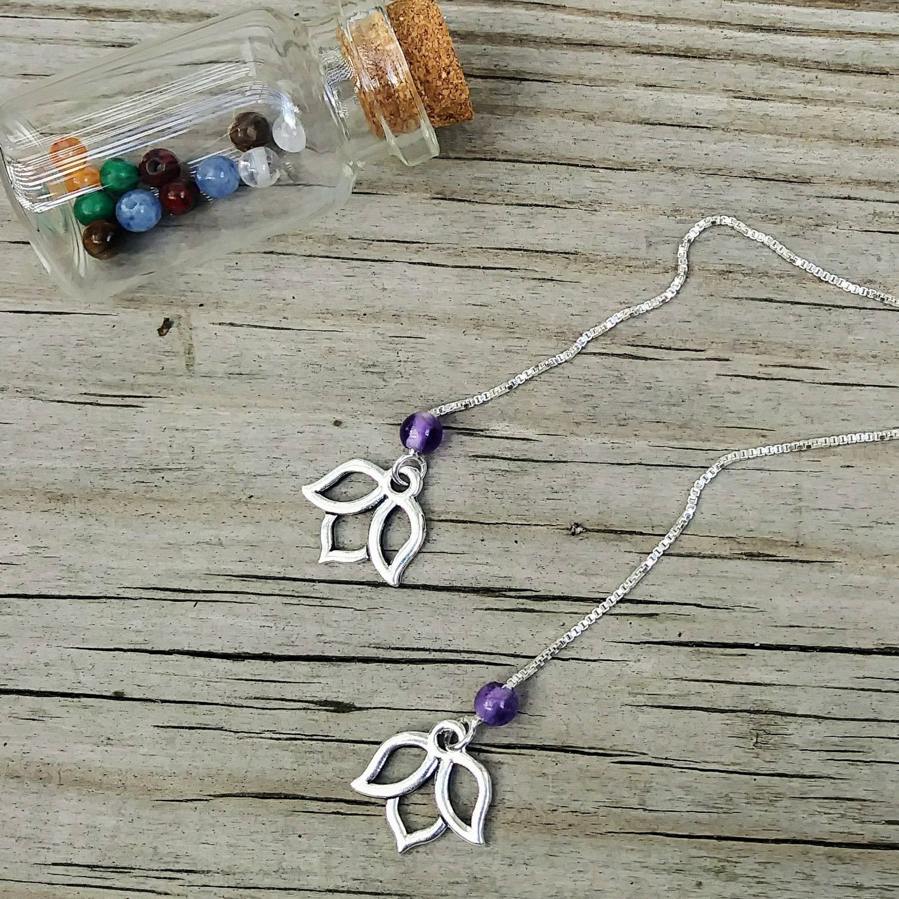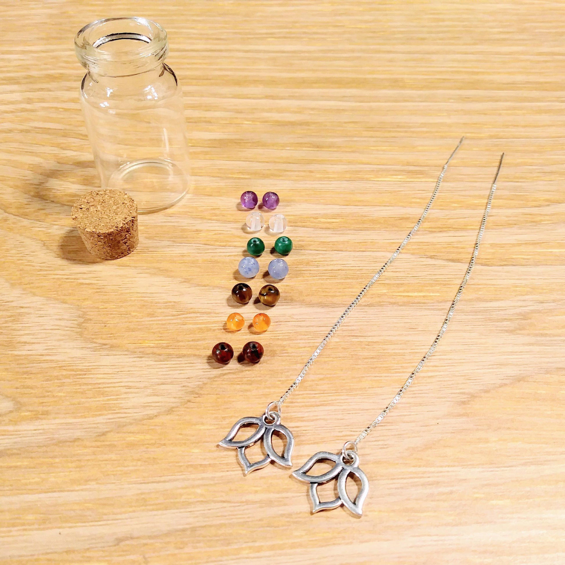 Love your threaders? Wear these lotus charm ear threads with a different chakra stone every day of the week! You can slip the gemstones on and off to match your mood or your outfit. Why not wear a different color gem (or two or three) on your ear threads from day to the next?