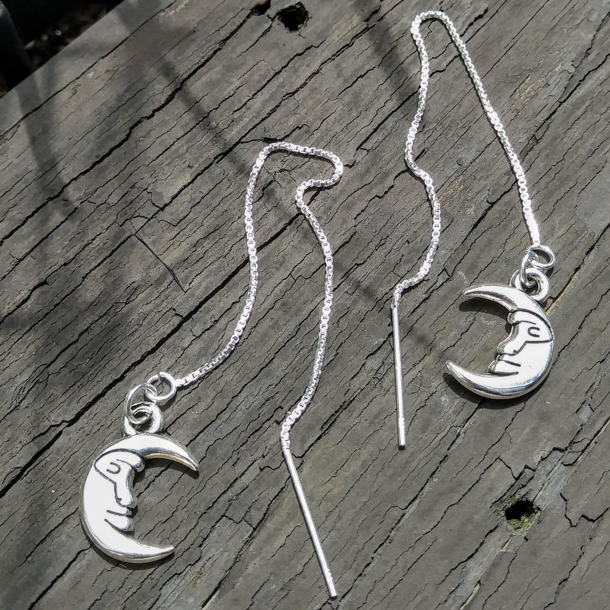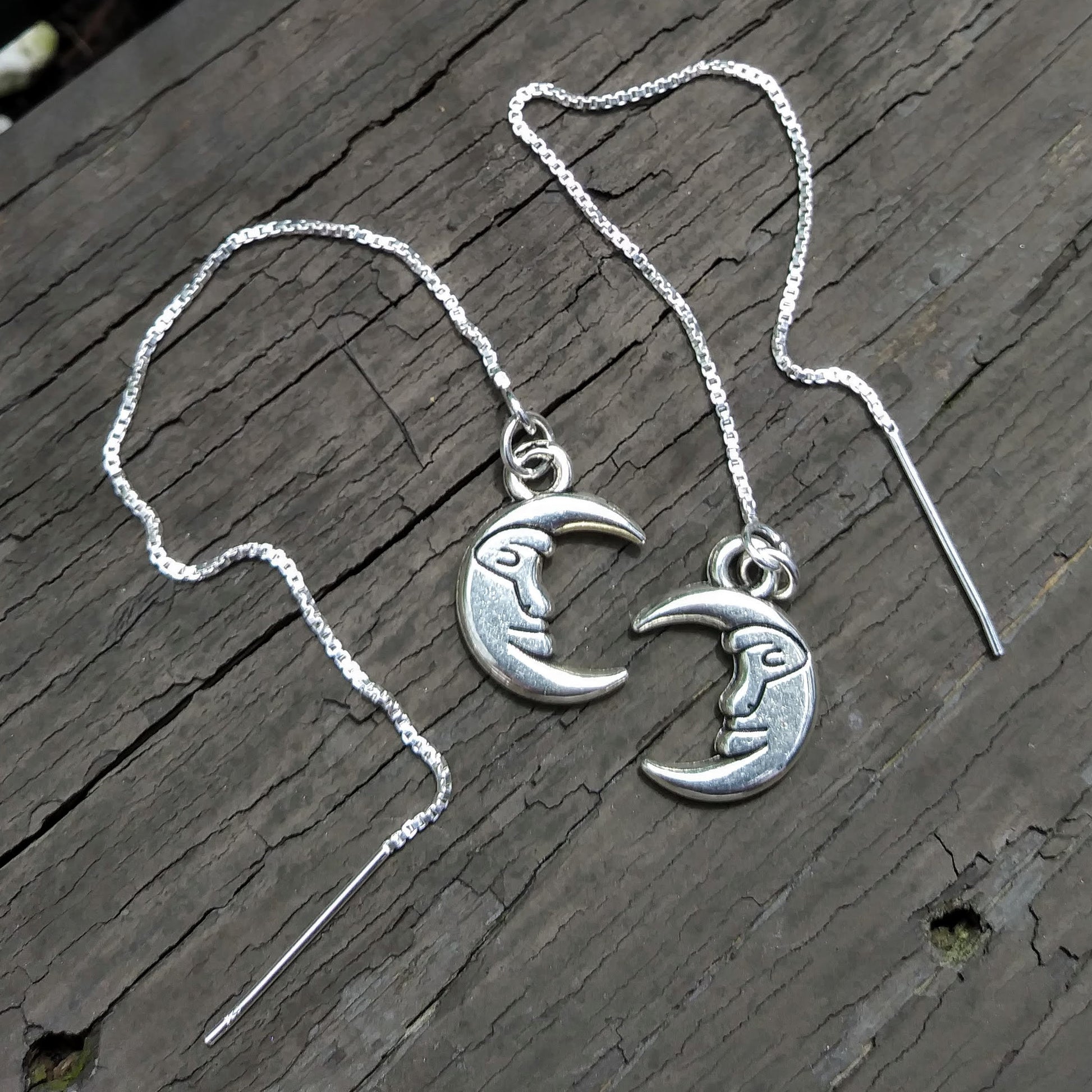 Man in the Moon Threader Earrings - 4 inch 0.925 Sterling Silver Threads
