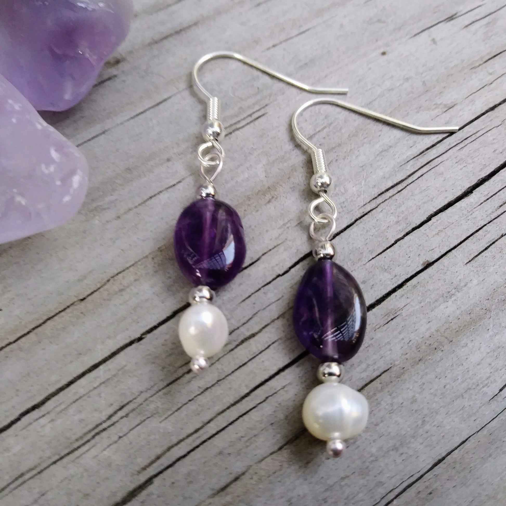Each pair of earrings will vary slightly due to the natural variations in the pearls and the amethyst. We make every effort to match paired stones as closely as possible!