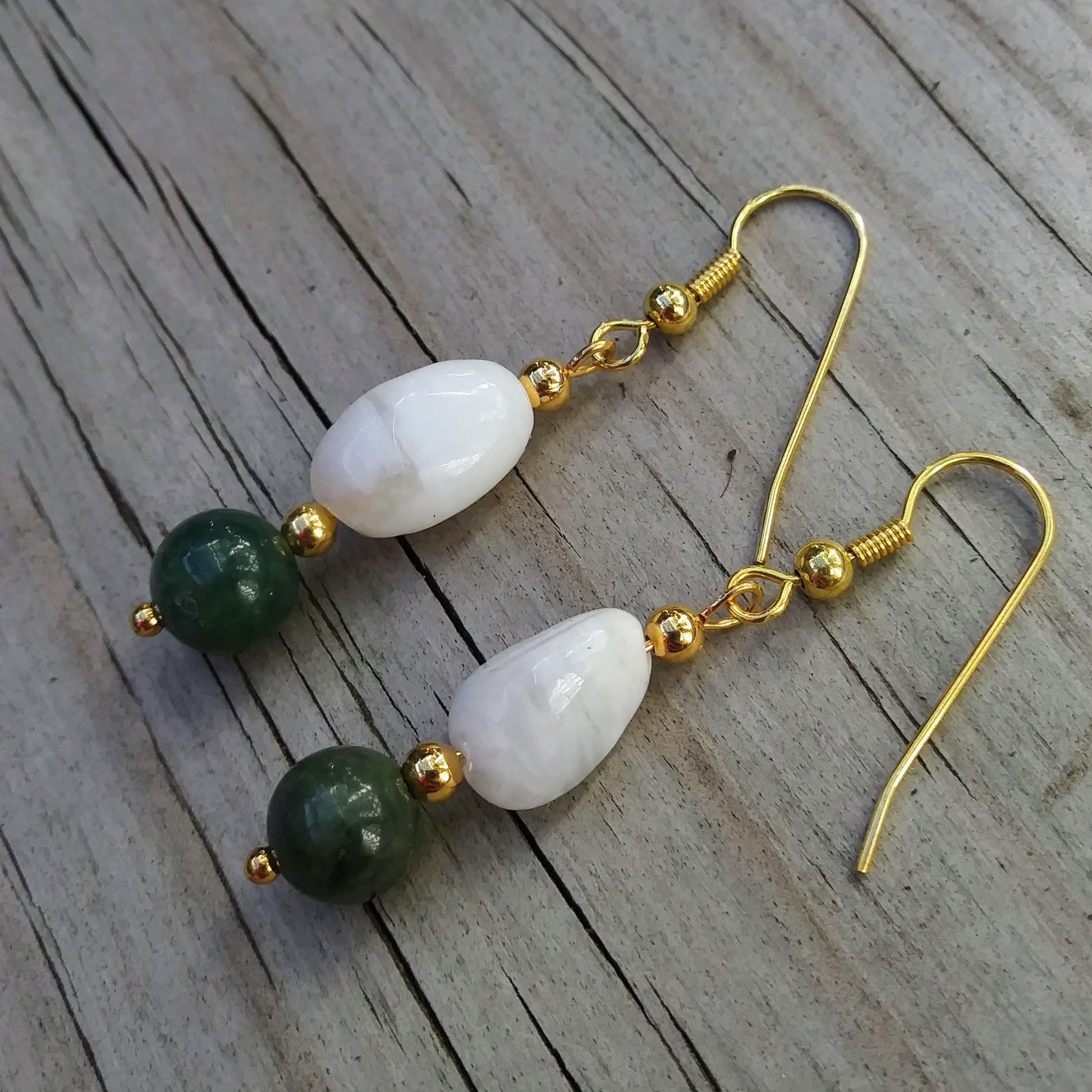 Dark Green Jade & Peruvian Opal Gold Earrings